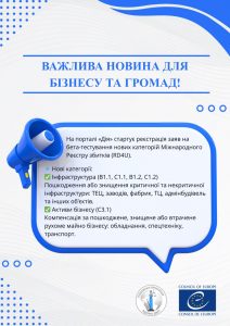 На порталі «Дія» стартує реєстрація заяв на бета-тестування нових категорій Міжнародного Реєстру збитків (RD4U).